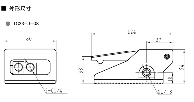 用脚踩踏的控制阀,广泛应用于各种气动系统中,操作力小,解放双手,二位三通的R、P