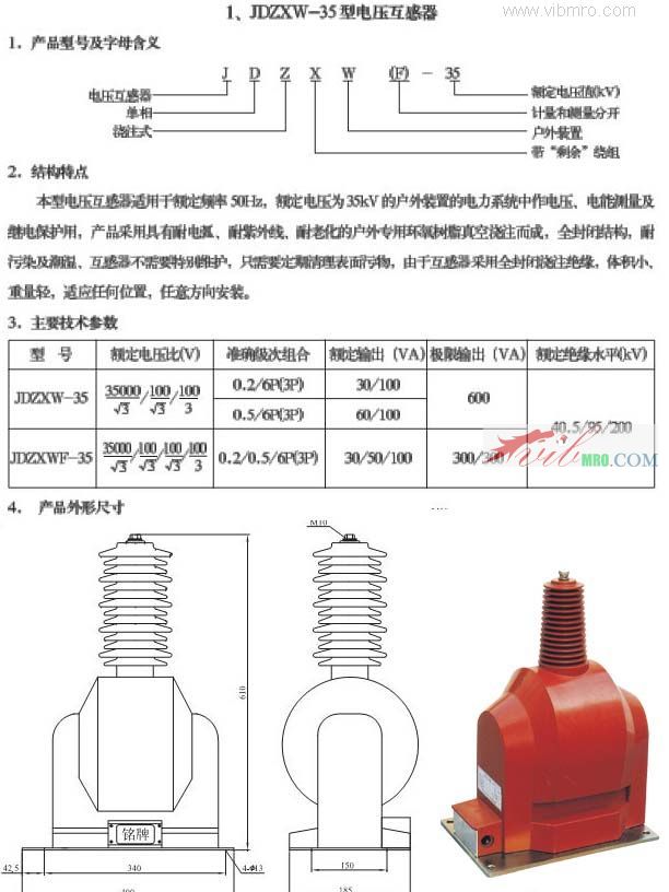 本型互感器为户外环氧树脂浇注全封闭、全工况型电压互感器,具有耐污染及潮湿,气候适应性强等优点。适用于额定频率50Hz或60Hz,额定电压35kV户外装置的电力系统中作电气测量及电气保护用。