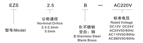 ![]() ■ 产品特点 ◆ 该产品为系列化生产,体积小,流量大,适用于多种介质 ◆ 阀体材质为:铜或SS304不锈钢、SS316不锈钢 ◆ 安装:按阀上所标流向箭头,为增强使用寿命和可能性,最好线圈向上,水平安装 ◆ 密封件:标准产品为NBR(丁腈橡胶)、可采用VITON(氟橡胶)、EPDM(乙丙橡胶),以适用不同流体的开关控制。 ■ 举例 ▲ 欲订购接公称通径为5mm,标准电压为DC24V,EZS系列不锈钢电磁阀,其正确的订购码为EZS-5B-DC24V ■ 符号 ![]() ■ 型号命名 ![]() |