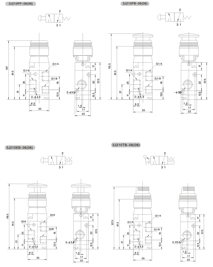 3J210PP-08,3J2系列二位三通控制阀,EASUN亿日气动方向控制阀