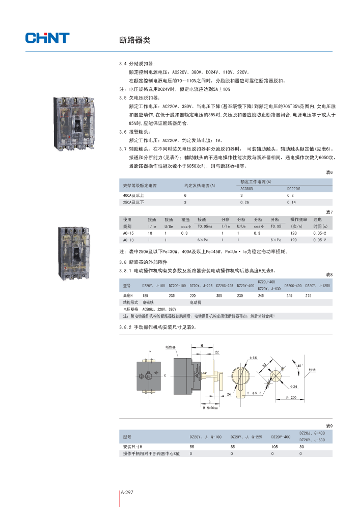 DZ20-630 电动机220V,DZ20系列塑料外壳式断路器,CHINT正泰电器