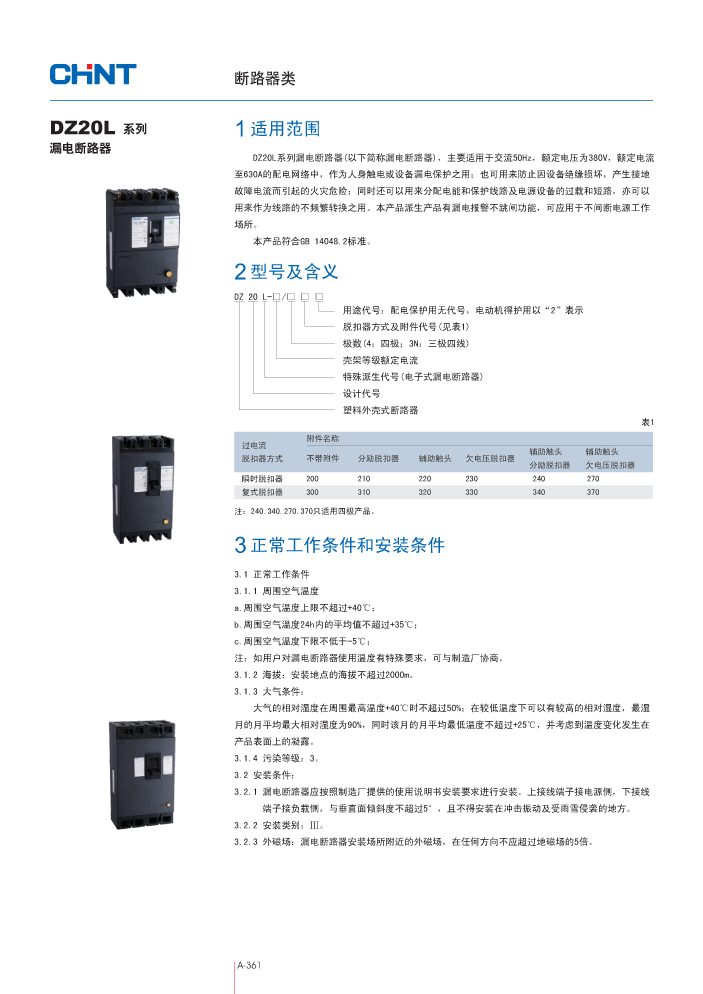 DZ20L-160/4300 100A 100mA,DZ20L系列漏电断路器,CHINT正泰电器