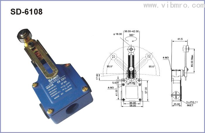 台湾SAMD山电,详细图片,安装尺寸,参数,价格,SD9108,SD-9108行程开关