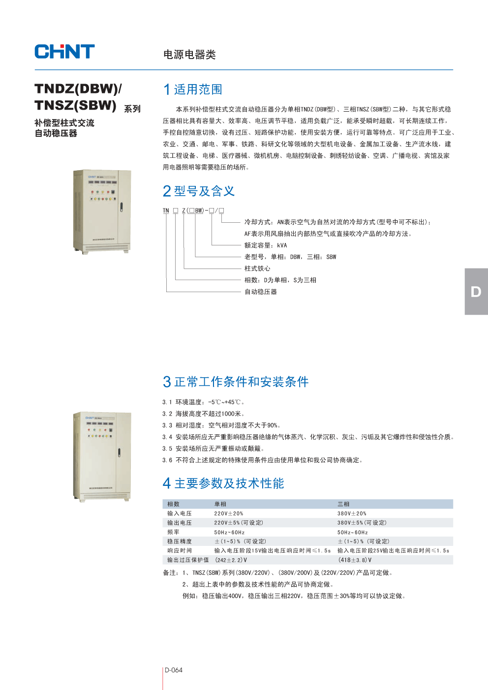 TNDZ(DBW)/TNSZ(SBW)系列补偿型柱式交流自动稳压器,正泰集团CHINT国内一级代理
